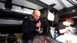 Cold pasta breakfast time in the main saloon of the SFS Volvo 70